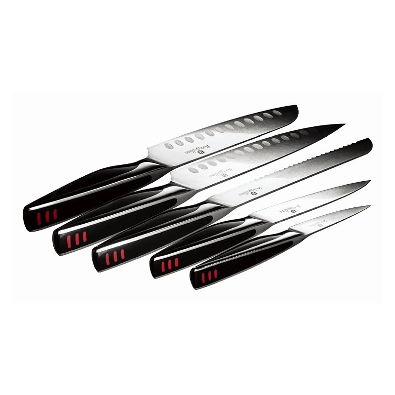 Skvelá sada nožov z radu Phantom Line bola vyrobená z kvalitnej, laserom brúsenej nerezovej ocele, doplnená o dizajnovo moderný, drevený stojan. Nože je možné umývať aj v umývačke riadu.