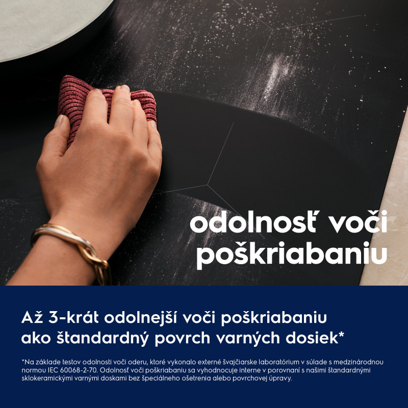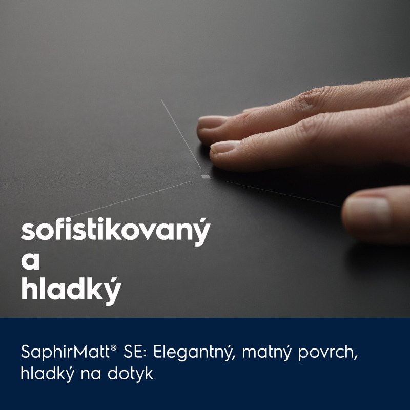 Elegantná matná varná doska SaphirMatt® SE je navrhnutá do posledného detailu. Matný povrch dosky je 3x odolnejší proti poškriabaniu v porovnaní so štandardnými varnými doskami.