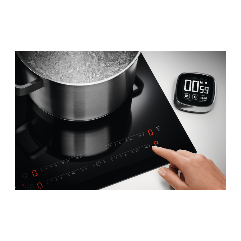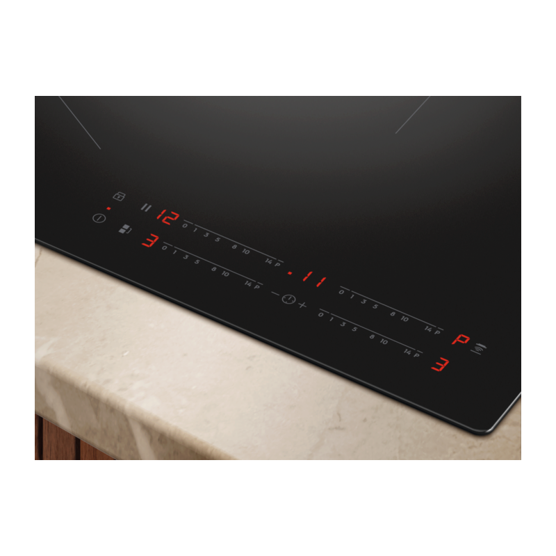 | Ovládacie funkcie | 3 krokové využitie zvyškového tepla, akustický signál, automatické zahratie, rýchle ohriatie - funkcia Booster, detský zámok, časovač, Eco časovač, flexibilný Power Management, Hob2hood, zámok tlačítok, ľavý Bridge, minútka, pauza, vypnutie zvuku, ukazovateľ času |