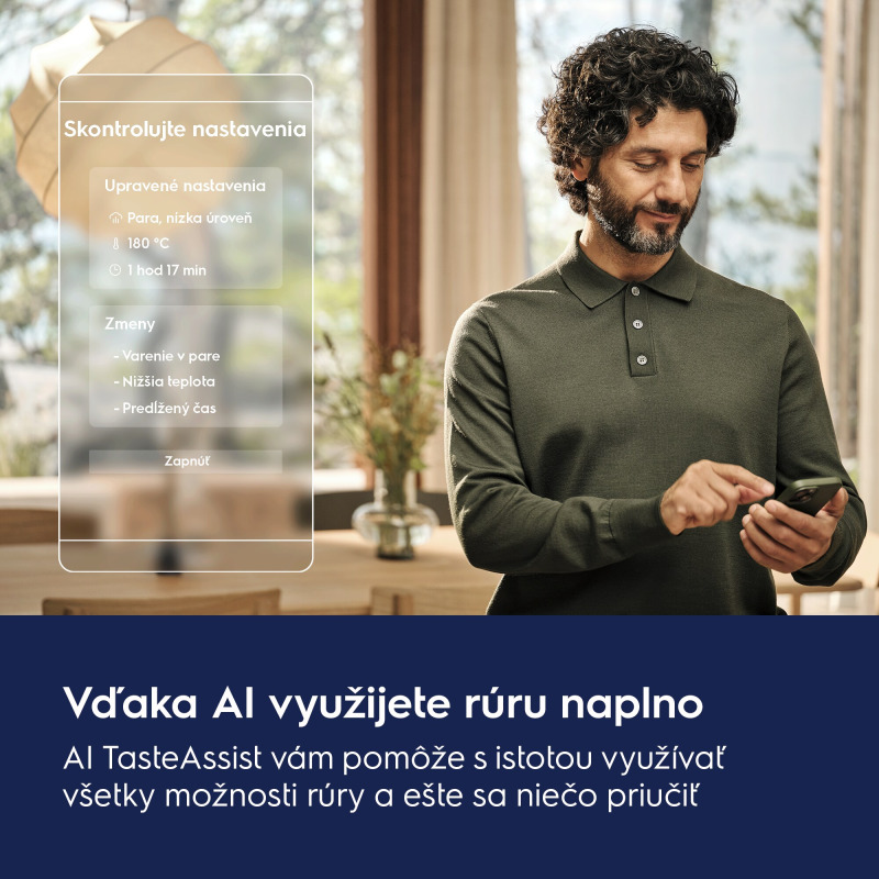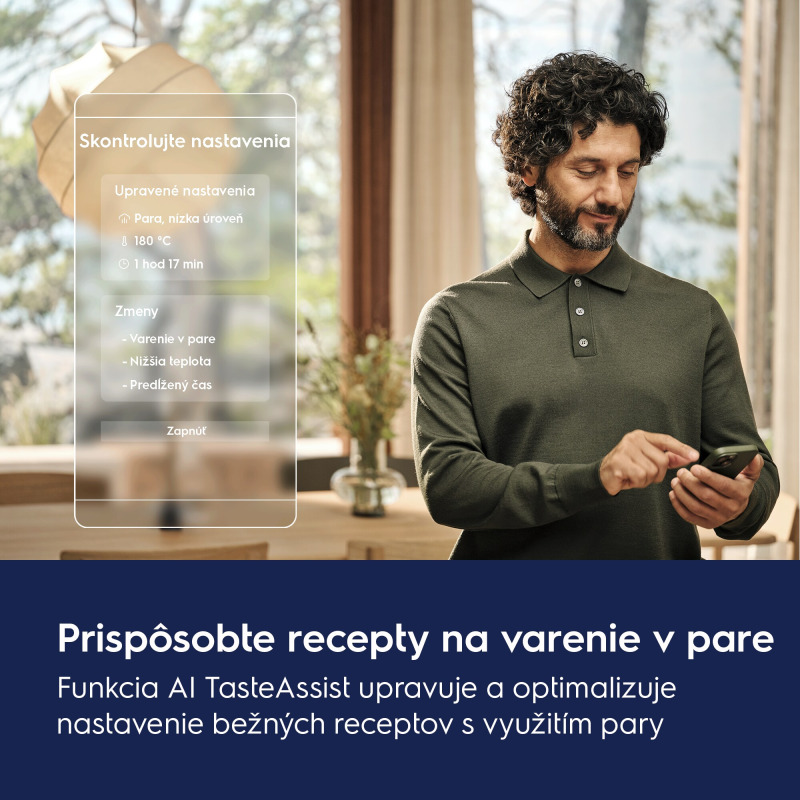Využite umelú inteligenciu na prípravu jedál pomocou pary, stačí odoslať recept z webových stránok do vašej rúry. Funkcia AI TasteAssist optimalizuje nastavenia, ako je teplota, čas a funkcia pary pre parnú rúru, aby ste dosiahli zdravšie a chutnejšie pokrmy s nižšou spotrebou energie.