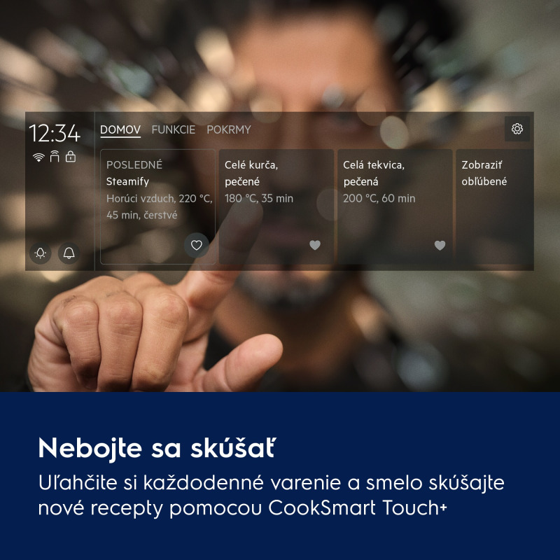 Uľahčite si každodenné varenie a s istotou vyskúšajte nové techniky. CookSmart Touch+ vám pomôže pripraviť chutnejšie jedlá s nižšou spotrebou energie. Svoje obľúbené jedlá môžete navyše načítať jediným dotykom. Prepojením s aplikáciou získate bezproblémový zážitok.