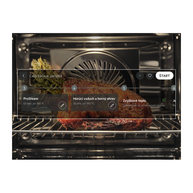 Rúra SteamPro vám pomôže pripraviť lahodnejšie jedlá s parou pri pečení, opekaní, dusení aj zohrievaní. Stačí vybrať správnu úroveň pary a môžete si vychutnať šťavnatejšie a chutnejšie mäso, jemnejšie ryby a chrumkavejšie kôrky a zeleninu.
