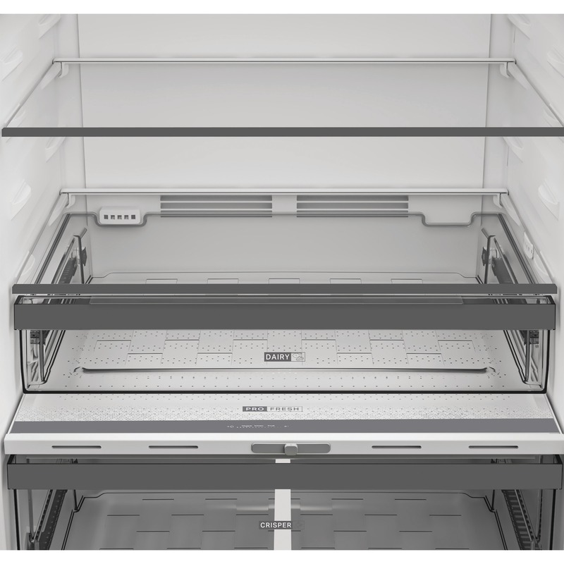 Dva nezávislé chladiace systémy No Frost vytvárajú ideálne beznámrazové prostredie pre uchovávanie potravín, ktoré zabezpečuje ideálnu teplotu a vlhkosť a zabraňuje miešaniu pachov medzi chladničkou a mrazničkou. Umiestnite ovocie a zeleninu kamkoľvek do chladničky, Dual NoFrost ich udrží čerstvé až 15 dní*. *Na základe úbytku hmotnosti a vizuálnej kvality, berúc do úvahy bežné ovocie a zeleninu. Postup interného testovania.