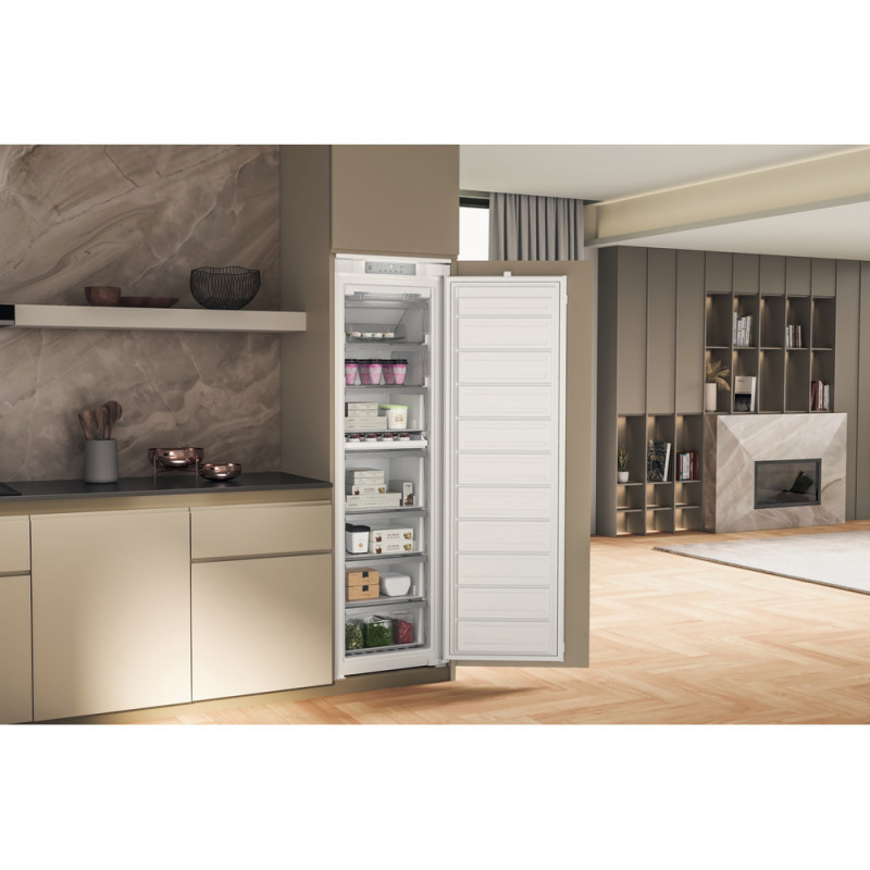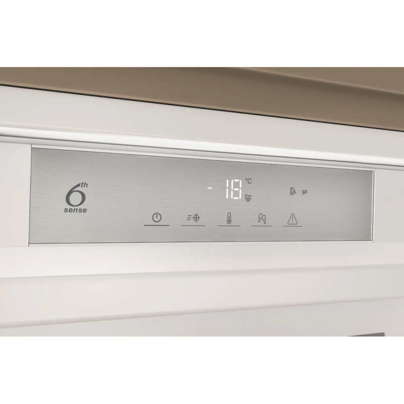 Výhody tejto vstavanej truhlicovej mrazničky Whirlpool: biela farba. Beznámrazová technológia No Frost znižuje vlhkosť vo vnútri mrazničky a účinne zabraňuje tvorbe ľadu. Technológia Fast Freezing zmrazuje potraviny rýchlejšie, aby bola chránená ich chuť, štruktúra a výživová hodnota. Exkluzívna technológia 6. ZMYSEL, ktorá monitoruje teplotu vo vnútri mrazničky a automaticky zvyšuje mrazenie len v prípade potreby. Úsporná a šetrná k životnému prostrediu.