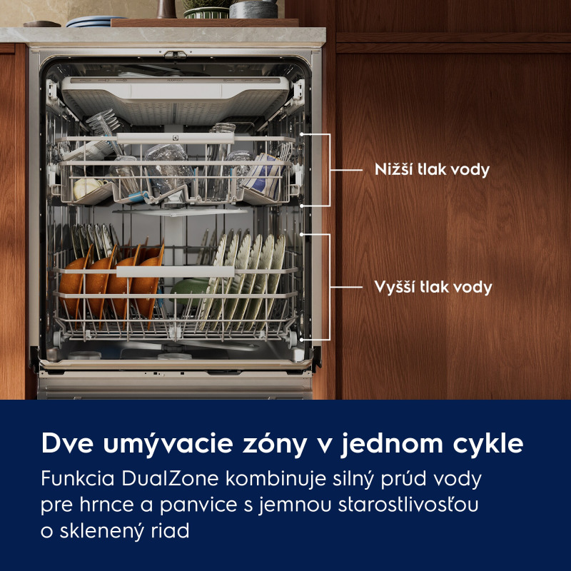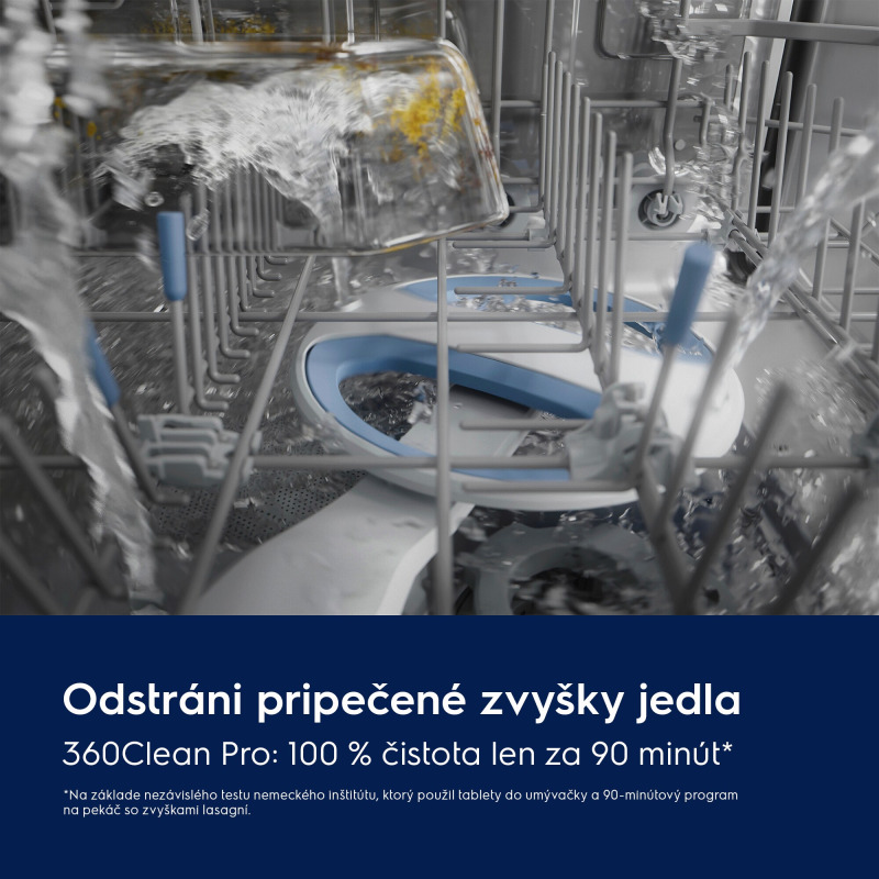 Za 90 minút úplne zmiznú aj najodolnejšie zvyšky, ako sa overilo v testoch*. Sprchovacie rameno má dve trysky, kruhovú a priamu. Trysky efektívne privádzajú vodu z viacerých uhlov, aby bol riad po každom umývaní dokonale čistý.