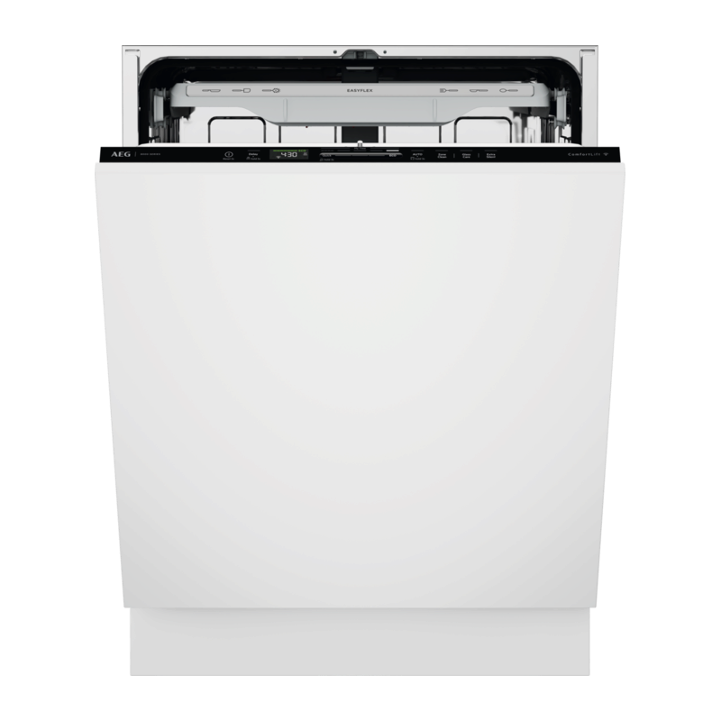 Prepracované koše EasyFlex Plus sa plynulo vysúvajú a majú tri sklápateľné rady na vytvorenie priestoru pre nadrozmerný riad. Gumové úchyty a protišmykové hroty bezpečne držia poháre na stopke a zabraňujú nárazom. Do zásuvky na príbor sa zmestia aj metličky a naberačky.