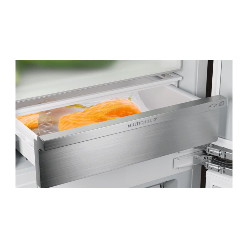 Zásuvka MultiChill 0° vám poskytuje úplnú kontrolu s nastaviteľnou teplotou na skladovanie mäsa a rýb. Pomocou aplikácie môžete aktivovať programy na skladovanie potravín, od chladenia nápojov až po správne rozmrazovanie mrazených potravín alebo zachovanie zvyškov jedla v čerstvom stave.