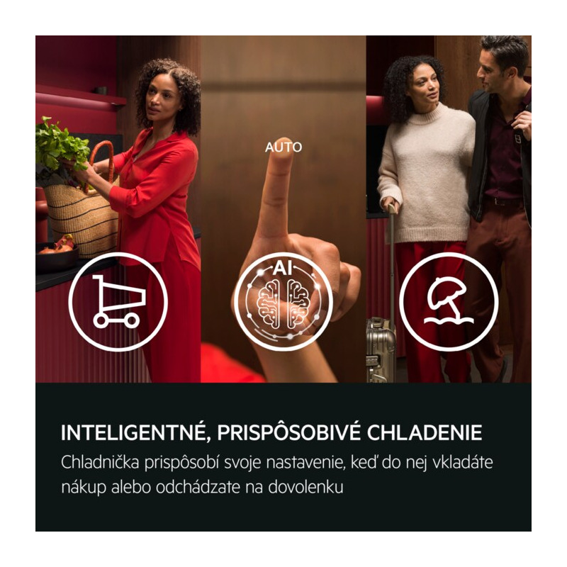 AI CoolAssist® intuitívne prispôsobuje nastavenia chladničky vášmu dennému režimu – či už dopĺňate zásoby alebo odchádzate na dovolenku. AI CoolAssist® sa prispôsobí vašim činnostiam, aby optimalizoval teplotu chladenia a funkcie, a zároveň ušetril až 14 % spotreby energie pri slabšom využívaní.*