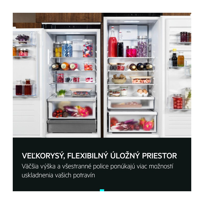 Chladnička s mrazničkou MultiSpace využíva priestor až po horný okraj. Premyslený dizajn a prispôsobiteľný interiér vám umožnia uložiť všetky potraviny.