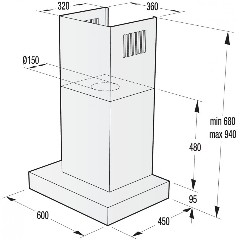 Minimálny výkon vypočítate vzorcom: objem kuchyne (m3) x 10. Pre kuchyňu 3 x 4 x 2,6 m (31 m3) je minimum 310 m3/h. Odporúčame rezervu 20-30 %, teda aspoň 400 m3/h. Pre otvorené kuchyne spojené s obývačkou počítajte celý priestor. Pri recirkulačnom režime zvoľte o 30 % vyšší výkon.