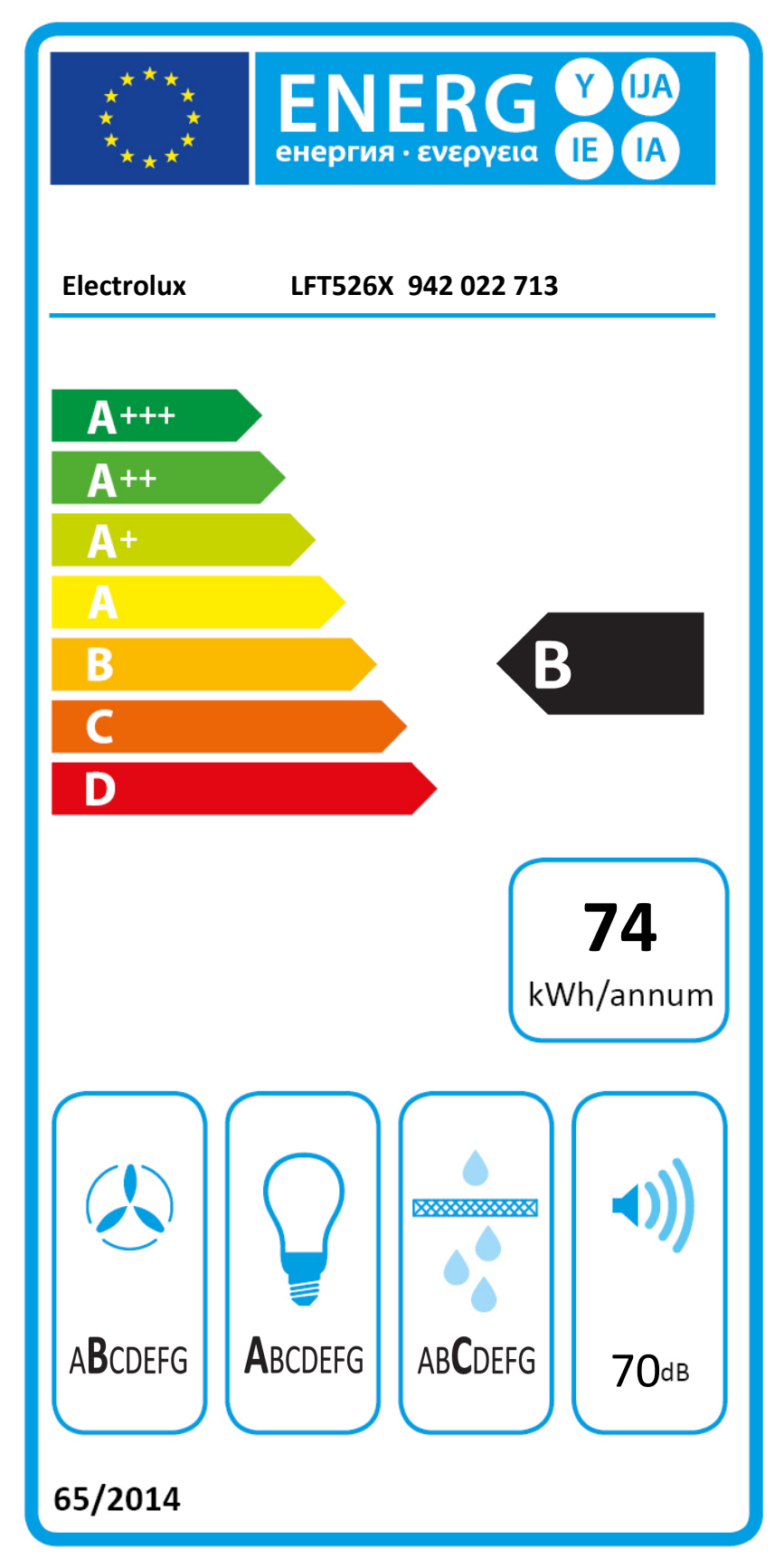 Odsávač pár; Electrolux 600 FLEX LEDspot LFT526X; Šírka (cm): 60; Typ: Komínový; En. trieda: C; Ovládanie: Mechanické; Počet rýchlostí: 3; Výkon (m3 / h) max./min .: 600/295; Výkon (m3 / h) intenzívny: Nie je; Hlučnosť (dB) max./min .:...